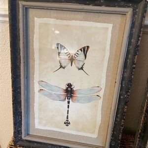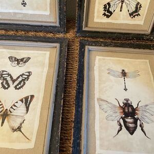 9.5 x 13 they aren’t small. Gorgeous distressed antique looking frames. Butterflies, bees, etc prints! Hardware to hang is on the back. Clean home always! Really beautiful set of 4 Creative Co-op framed prints. Nature theme.