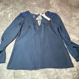 Creative Commune -stitch fix blue, silky, lace top
