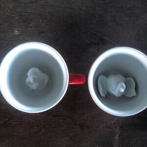 Creature cups have elephant and monkey at bottom that are slowly revealed as you drink. Monkey is discontinued and hard to find. 🙊 🍵