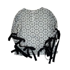 Creatures Of The Wind Gray Embroidered Eyelet Tie Sleeve Blouse. Neiman Marcus. Floral. Long sleeve. Crew neck. Keyhole back. Cotton polyester blend. Size 12. Armpit to armpit: 21". Length: 25.5". (201)