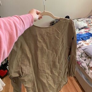 Creatures of comfort / beige silk linen dolman sleeve popover top blouse 4 small