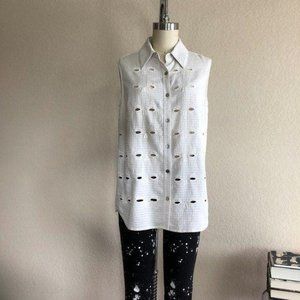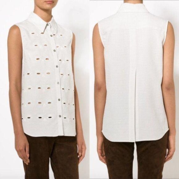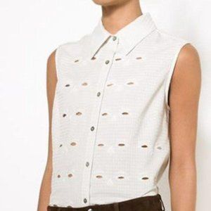 Opt for a minimalist look in Creatures of the Wind's white shirt. This cotton-blend style features a sleeveless shape and embroidered cut-out details, open mid back, making it ideal for every day. Team yours with skinny jeans and add heels to make yours an after-dark essential.