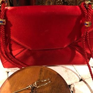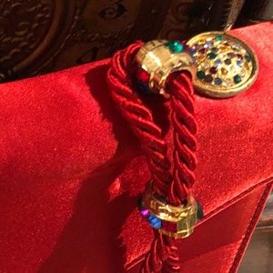 Crisp Red purse with Jewel's that are multi-color for support for the strap