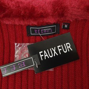 Creazioni Effeci Full Zip Quilted Sweater Jacket Womens M Red Faux Fur Collar NEW
