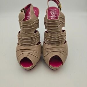 Creazioni Taccetti Beige Ruched Leather Peep Toe Slingback Heels 38/7.5 Italian