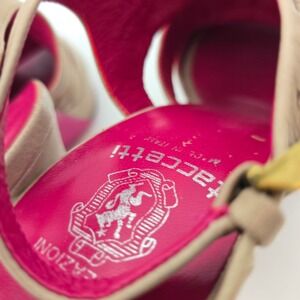 Keywords: Creazioni Taccetti, beige heels, ruched leather, peep toe heels, slingback heels, Italian design, size 38, women's shoes, dress shoes, party heels, formal footwear, ladies fashion, designer heels, occasion wear