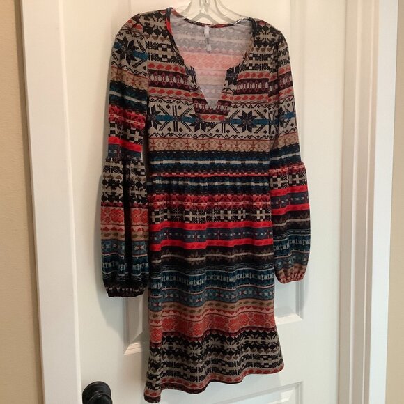 Fine knit, high waist line with elastic, sleeves fitted to elbow, then balloon out to elastic at end of sleeves. Excellent condition.