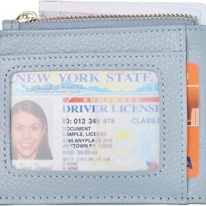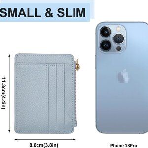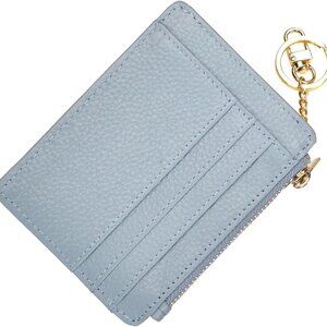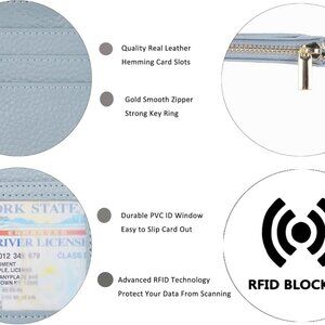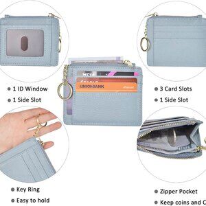 MINI but FUNCTIONLA & RFID BLOCKING: 6 card slots and1 ID window outside, 1 zipper pocket for cash, coins, change and daily accessories. A key chain with key ring is easy to put your keys together. Our coin purse is designed with advanced RFID SECURE technology to pretect your credit cards, debit cards, smartcards, RFID driver's licenses from scanning by RFID readers and keep your cards' vital imformation safe.