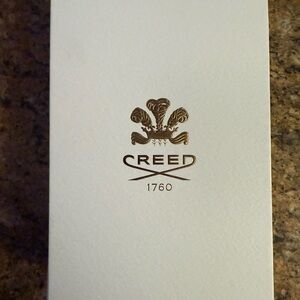 Sophisticated Creed packaging. Features a gold emblem on a white background.