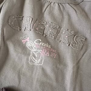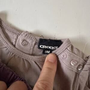 This adorable Creeks outfit is perfect for your little girl! It includes a purple plaid bubble skirt and a long-sleeve layered tee with buttons down the back. The outfit is in excellent condition and comes in size 6 months.