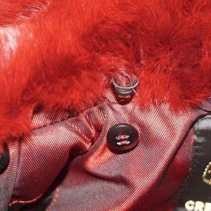 Creenstone Metallic Red Rabbit Fur Removable Collar Belted Jacket 34 us size small