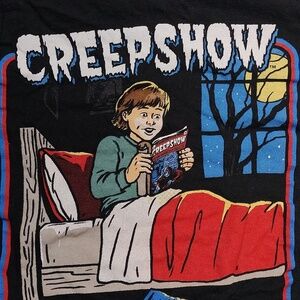 Black Creepshow graphic t-shirt with colorful design. Features a spooky illustration and text.