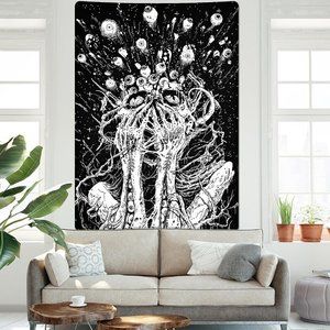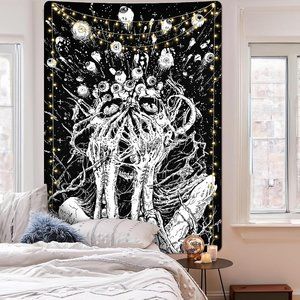 Black & White Creepy Eyeballs Skeleton Fantasy Wall Tapestry New