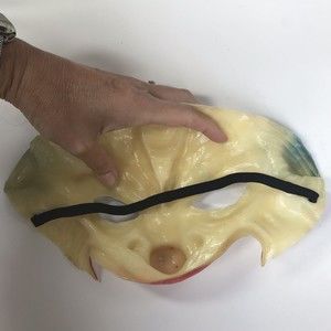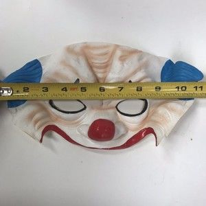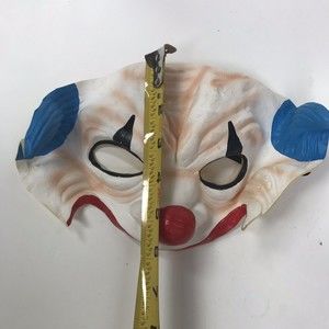 Creepy Clown Halloween Mask and Rainbow Wig. Condition is "Used. The mask is more of a half mask. It has no markings or tags on it. It has an elastic strap across the back to hold it on your head. The wig has rainbow colors. The tag inside says, PMG 2006. The Paper Magic Group. It fits my head (adult female) which is about 21 inches around. Smoke free home. [205]
