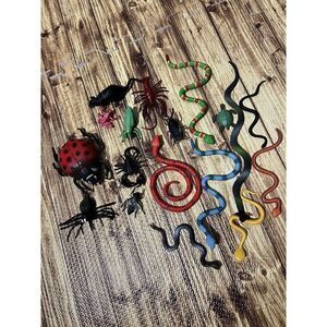 Collection of 18 Creepy Crawly Figures Unbranded Snakes Rats Spiders Bugs.