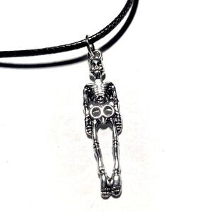 Creepy, Large Skeleton Pendant, With Black Wax Cord Adjustable Neckace