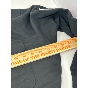 In good vintage condition without stains or flaws. 2 Button close patch pockets. Black fabric. Made in USA 55% Dacron Polyester 45% Viscous Rayon. Label states hand wash but this shirt has been washed in the washing machine in the past. Press with cool iron.