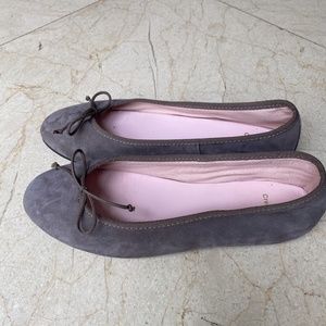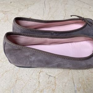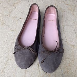 Used suede taupe Cremades ballerina flats with rubber soles and tied laces at the front. Stylish, classy and comfortable. Made and bought in Spain.