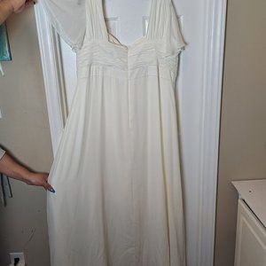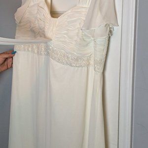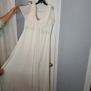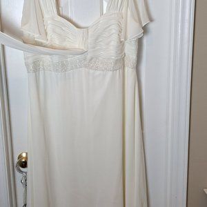 This dress is ready for your wedding dreams. It is a beige creme colored ready to wear wedding dress. It has a small, slight stain on the shoulder, its very minute. You will be the talk of the town in the dress. No snags, never worn.