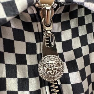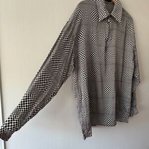 Creme De Silk Vintage Mens Checkered Illusion Half Zip 100% Silk Shirt Large