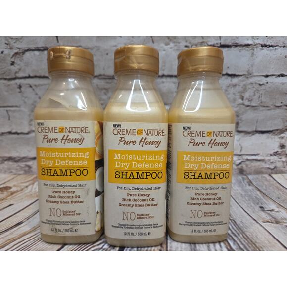 Creme Of Nature Pure Honey Set Of 3 Dry Defense Shampoo 12fl Oz 355mL.