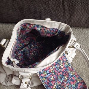 Barely used, has gold hardware. Inside is a pretty floral print. Can hold a lot of stuff!