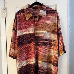 Creme de Silk Striped Silk Textured Casual Button Down Shirt XL