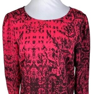 Cremieux Women's Medium Dark Pink Black Abstract 3/4 Sleeve Blouse.