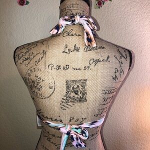 Cremieux Animal Print Pink & Aqua Bikini Top with Removable Cups Size Small