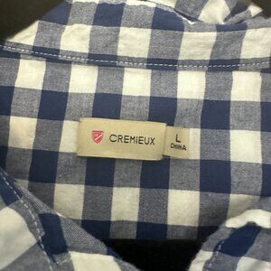 Cremieux Blue and Gingham Long Sleeve Top Size L Pearl Button Snap Close