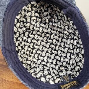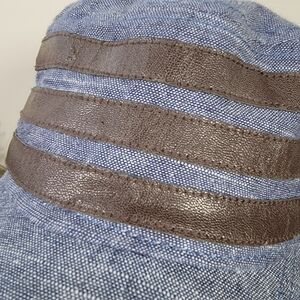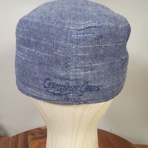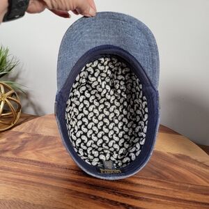 Cremieux Cadet Cap Women's Size M / L Blue Chambray Denim and Brown Faux Leather