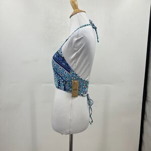 Cremieux Casa Blanca Midkini Swim Top Womens S Small Multi Halter Lace Up Back