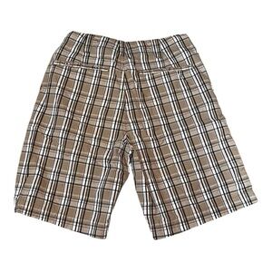 Classic checkered shorts with a tan base. Ideal for casual wear.