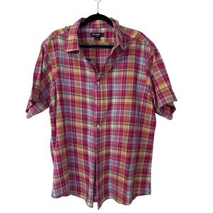 Cremieux Classics Men’s Short Sleeve Pink & Orange Plaid Button Up Sz XL GUC