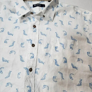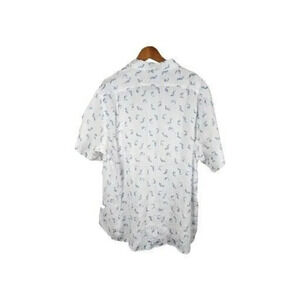 Cremieux Collection Shirt Men Button Down White Fish Print Short Sleeve Casual