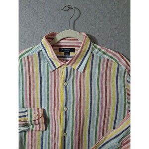 Cremieux Collection Shirt Mens XL 100% Linen Long Sleeve Rainbow Stripes
