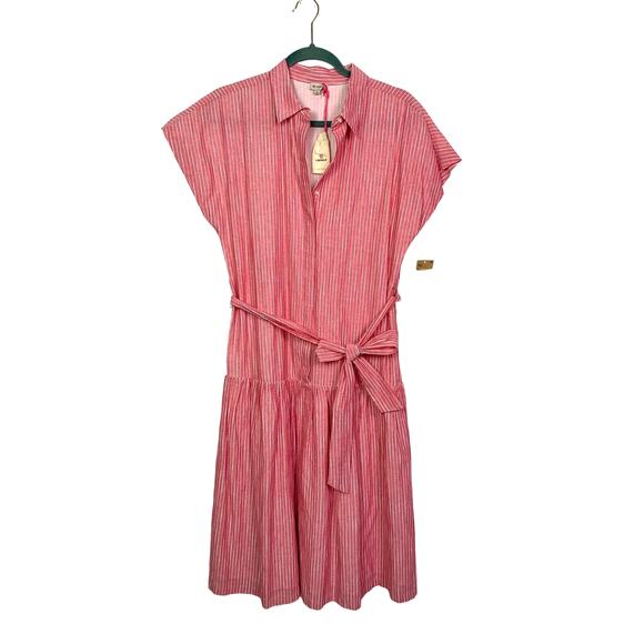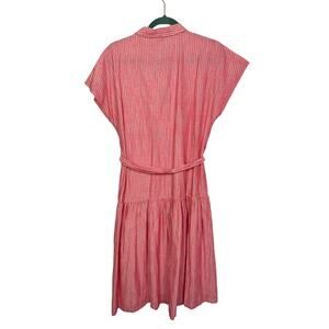 Cremieux Drop Waist Pinstripe Red Cotton Dress, Size Small
