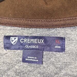 Stay warm and stylish with this Cremieux gray half-zip quilted sweater featuring brown elbow pads and collar accents. Perfect for any casual outing.
