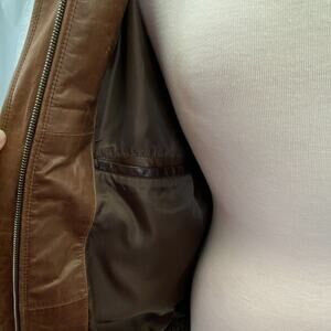 Cremieux Lambskin Jacket Mens Large Brown Bomber Flight Zip Bib Double Collar