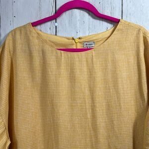 Cremieux Linen Blend Striped Flutter Sleeves Yellow Crewneck Prairie Midi Dress