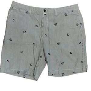 Cremieux Mens Size 38 Nautical Anchor Embroidered Striped 100% Cotton Shorts