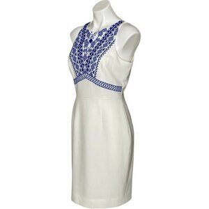 Cremieux NWT Sleeveless Sheath Dress, White Blue Embroidered Women's Size 6