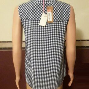 Cremieux Navy White Gingham Sleeveless Top Size XS NWT