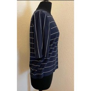 Measurements shown in pics. This is not a crop but it is shorter in length. The sleeves are a bit longer than normal short sleeves too. Cute design. Size Medium.