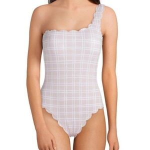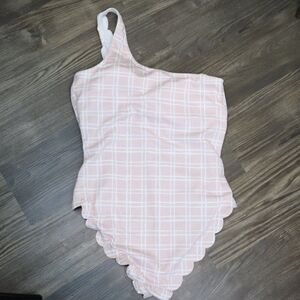 Cremieux One Shoulder Scalloped Pink Plaid Swimsuit L
