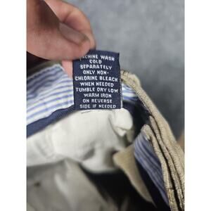 Details: Zip fly with button closure, belt loops, side slant front pockets, rear buttoned welt pockets, straight leg chino style suitable for smart casual wear.