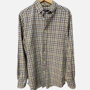 Cremieux Plaid Button Down Shirt Medium Men’s 100% Cotton Twill Khaki Multi