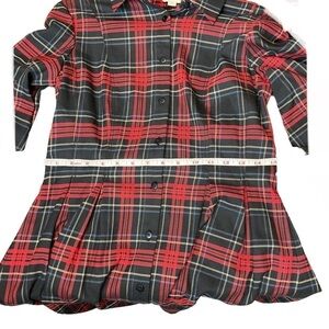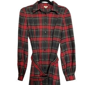 This beautiful well made Cremieux Ralph Lauren Inspired Christmas / Fall / Winter long sleeve full Button down shirt dress is on trend for the 2023/2024 season and would make for the perfect dress from the workplace to an even or party as well as a date night or holiday get together! It is a poly/ viscous/ elastane blend with detailed pleating at the waist as well as on the sleeve at the button cuffs that give a nice fullness on the sleeve. The matching belt has a fabric covered circle buckle that can be worn with the dress or add any belt to add some contrast! Perfect dress to wear with a great pair of boots and is also a great layering piece that can be style in so many ways not only as a dress but also could be worn open over other clothing! Sz.4 measurements are PTP 18” sleeve 23 1/2” length 36” waist 15” buckle 2 1:2” in diameter and the belt measured from tightest loop at 26 1/2” to the loosest loop at 30 1/2” retail price $159 😊