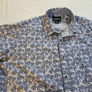 Cremieux Premium Denim Paisley Button Up Shirt White Blue Coastal Men XL