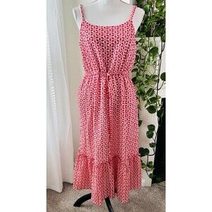Cremieux Red & White Floral 100% Cotton Fully Lined Boho Sundress Maxi Dress Med